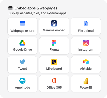 Embeds. You can embed many apps. 😅 A short glimpse: