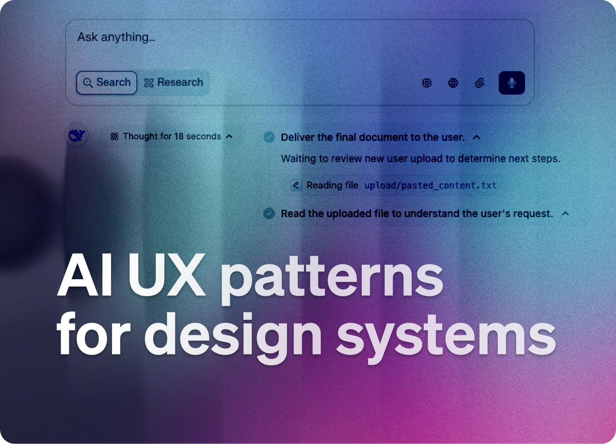 In this post, I review the key AI UX patterns you should add to your design system. Some of these components already exist in our design systems, but the real shift is in how we interact with them. We now need to start thinking and writing about: