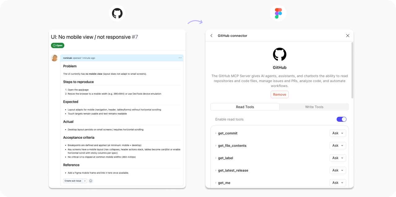 One more lever matters: connectors. If your requirements and content live outside Figma (Notion, GitHub, Linear, Jira, and more), you can pull them in so the prototype reflects the actual spec and copy, not your best guess.
