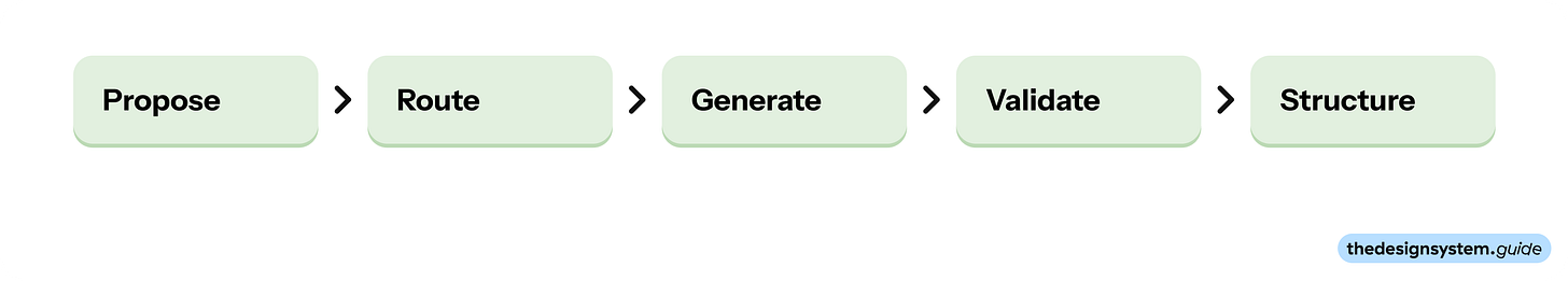 The workflow: propose, route, generate, validate