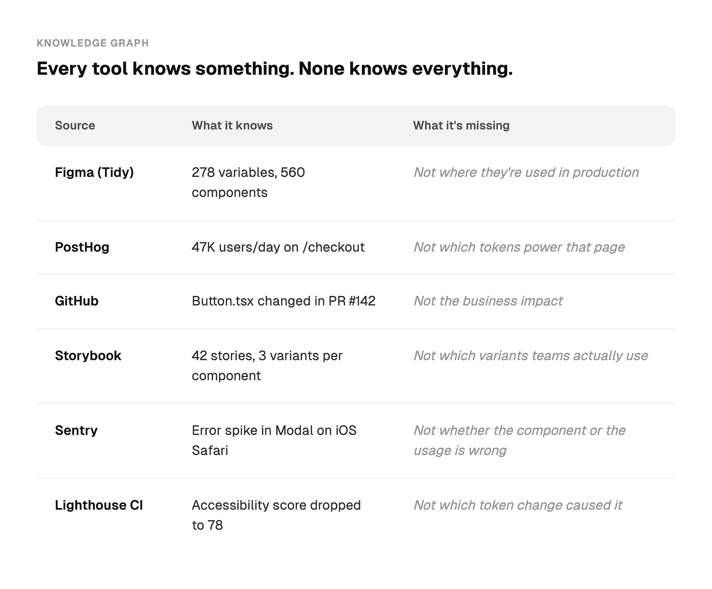 But here’s the thing. This architecture only works because the foundation is solid. Without clean token naming, without component descriptions, without intent documentation, the agent has nothing meaningful to work with.