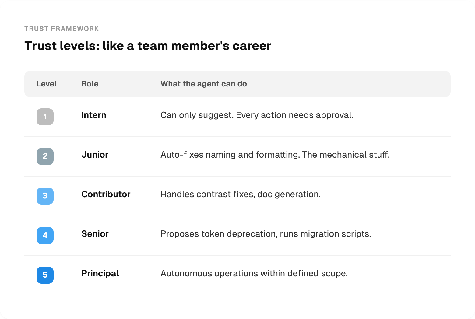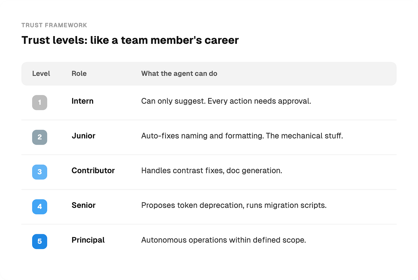 The trust system works like a team member’s career progression: