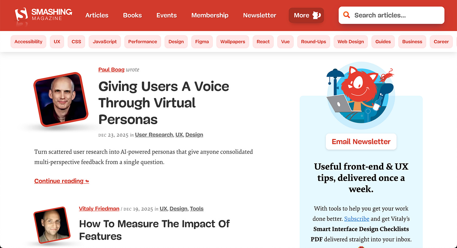 Vitaly is THE real UX king, sharing invaluable resources about all things design and UX.