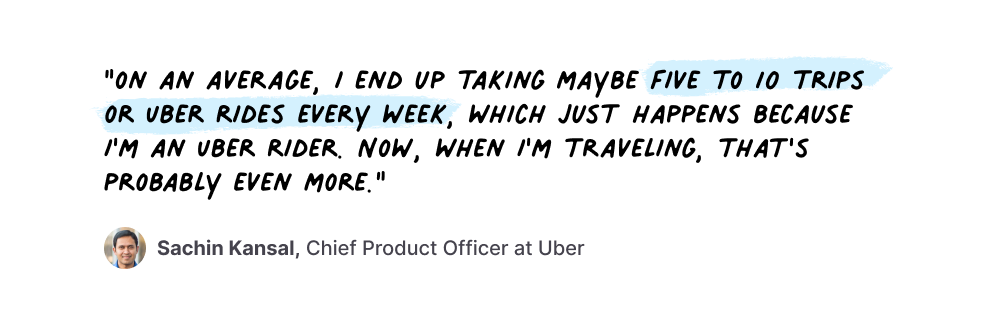 I really liked the podcast episode on Lennyâs show about âdogfoodingâ your own product, where Sachin Kansal, Chief Product Officer at Uber, shares how he uses their own product and then shares the feedback with his team. This isnât a formal research study. Itâs how he uses the Uber app, noticing patterns, understanding the context. Thatâs research.