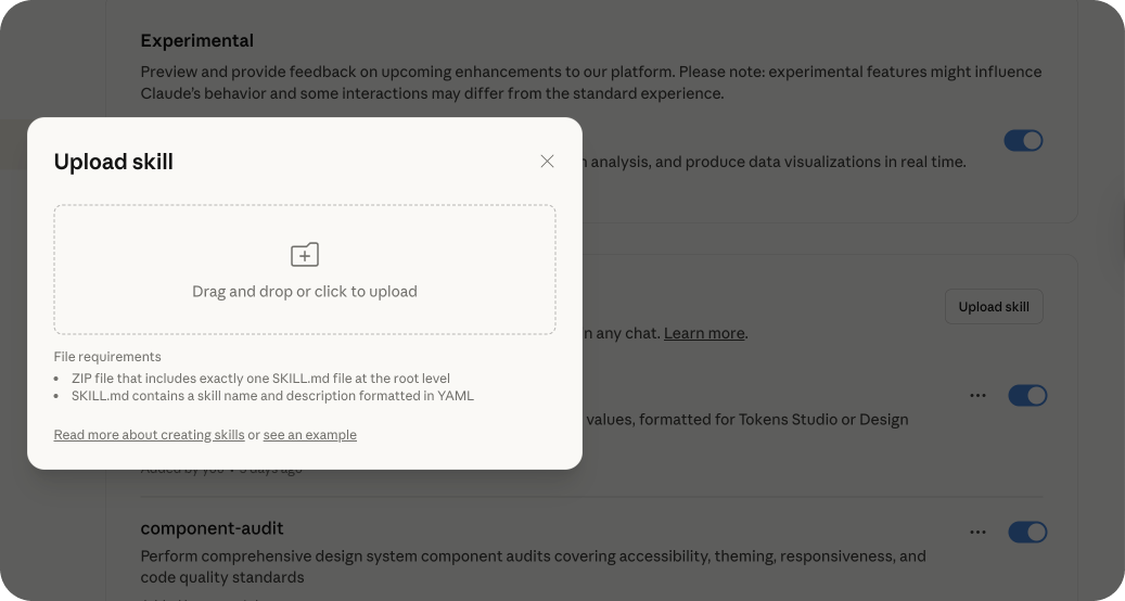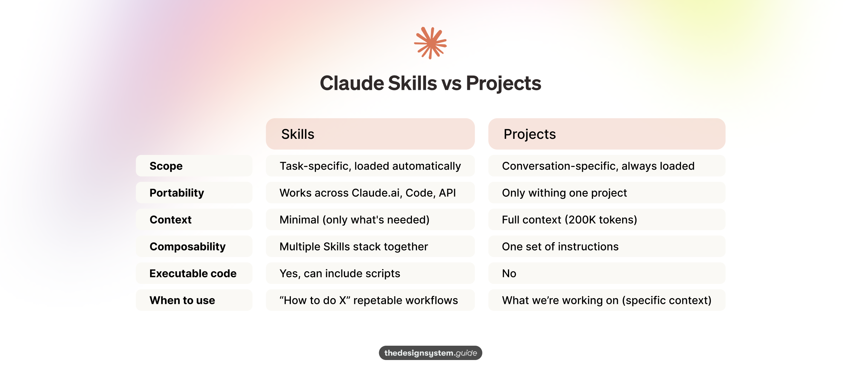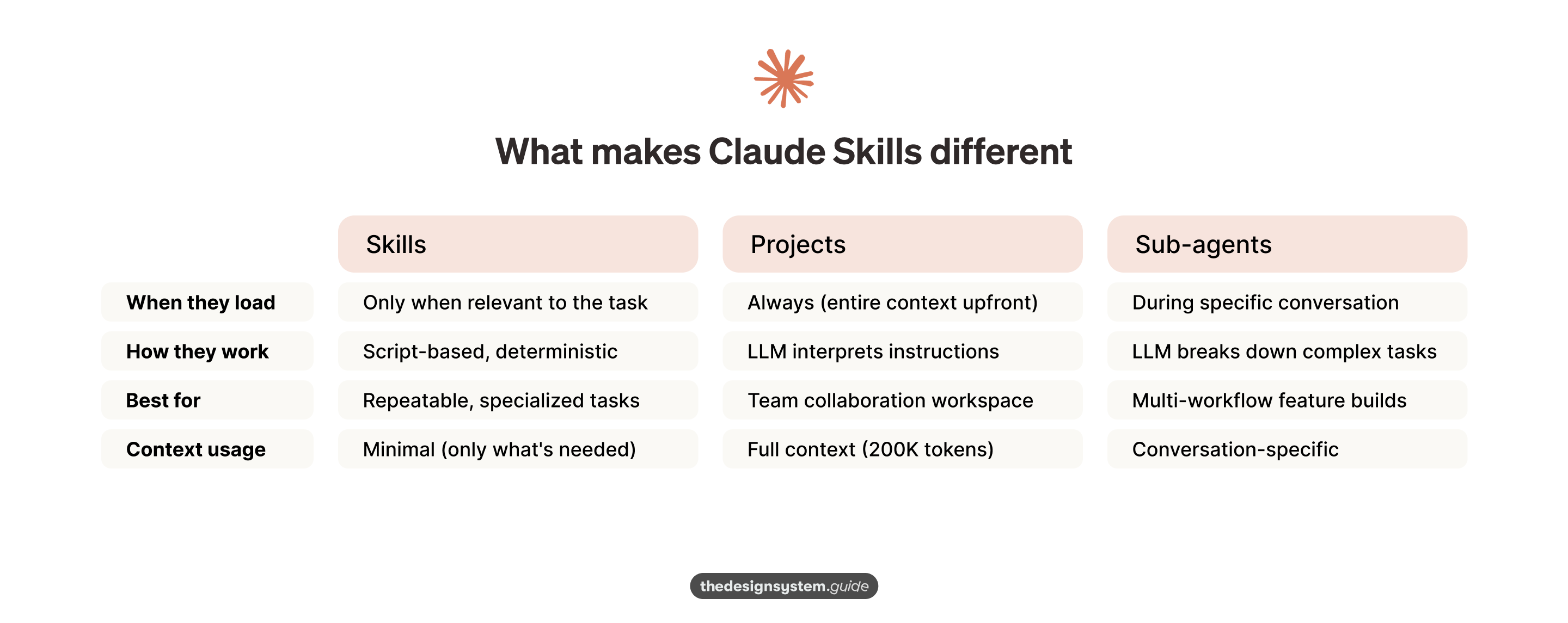 Use Skills for “how to audit components, sync tokens, write docs.”