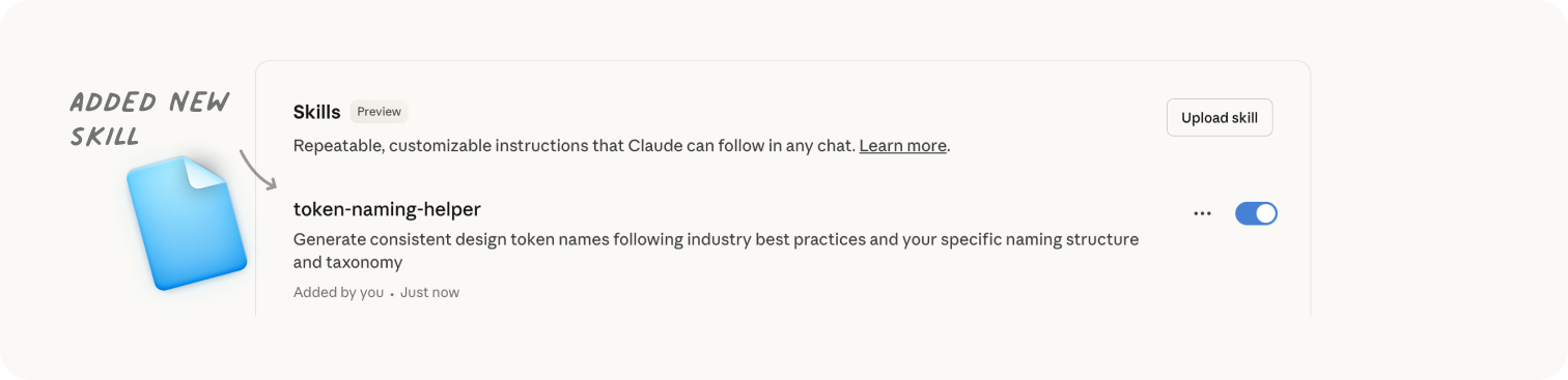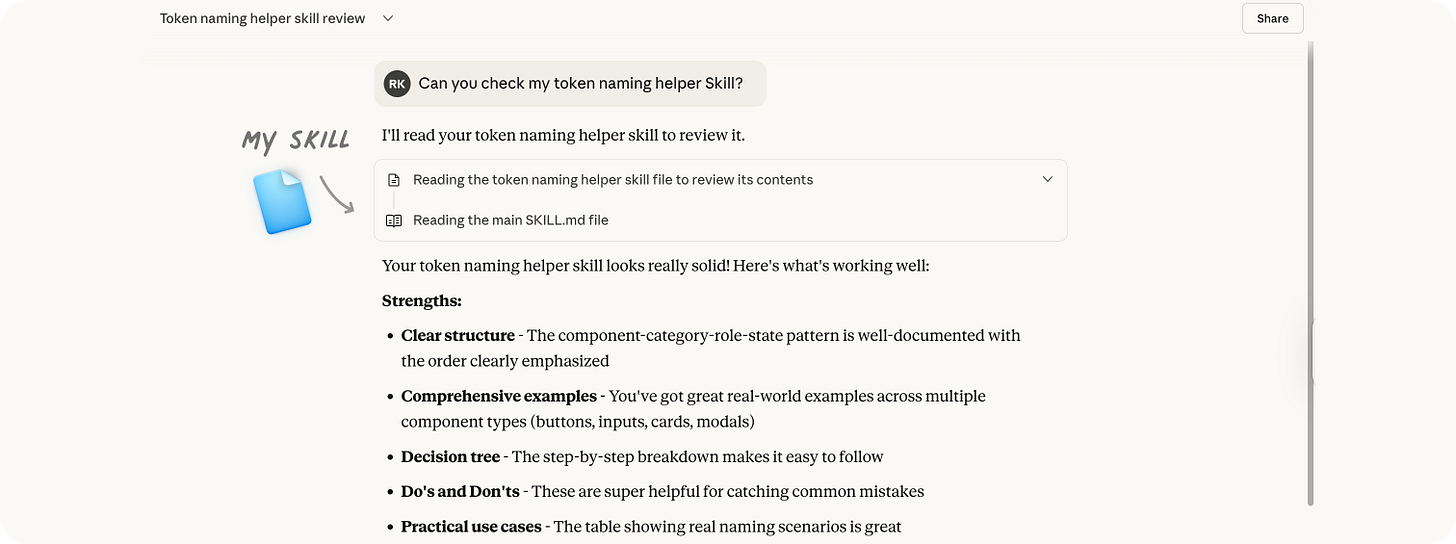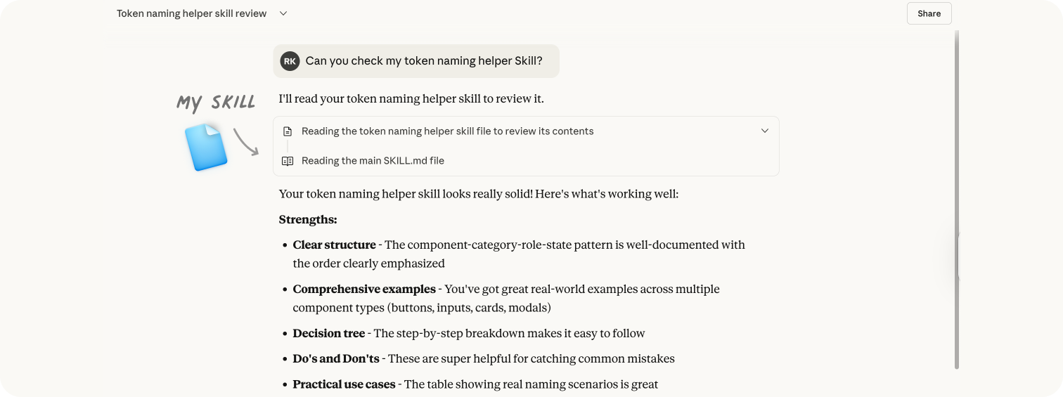 I already created namedesign tokens.guide, but now I wanted to apply the same knowledge inside Skills as well, so that I can utilize it whenever I use Claude.